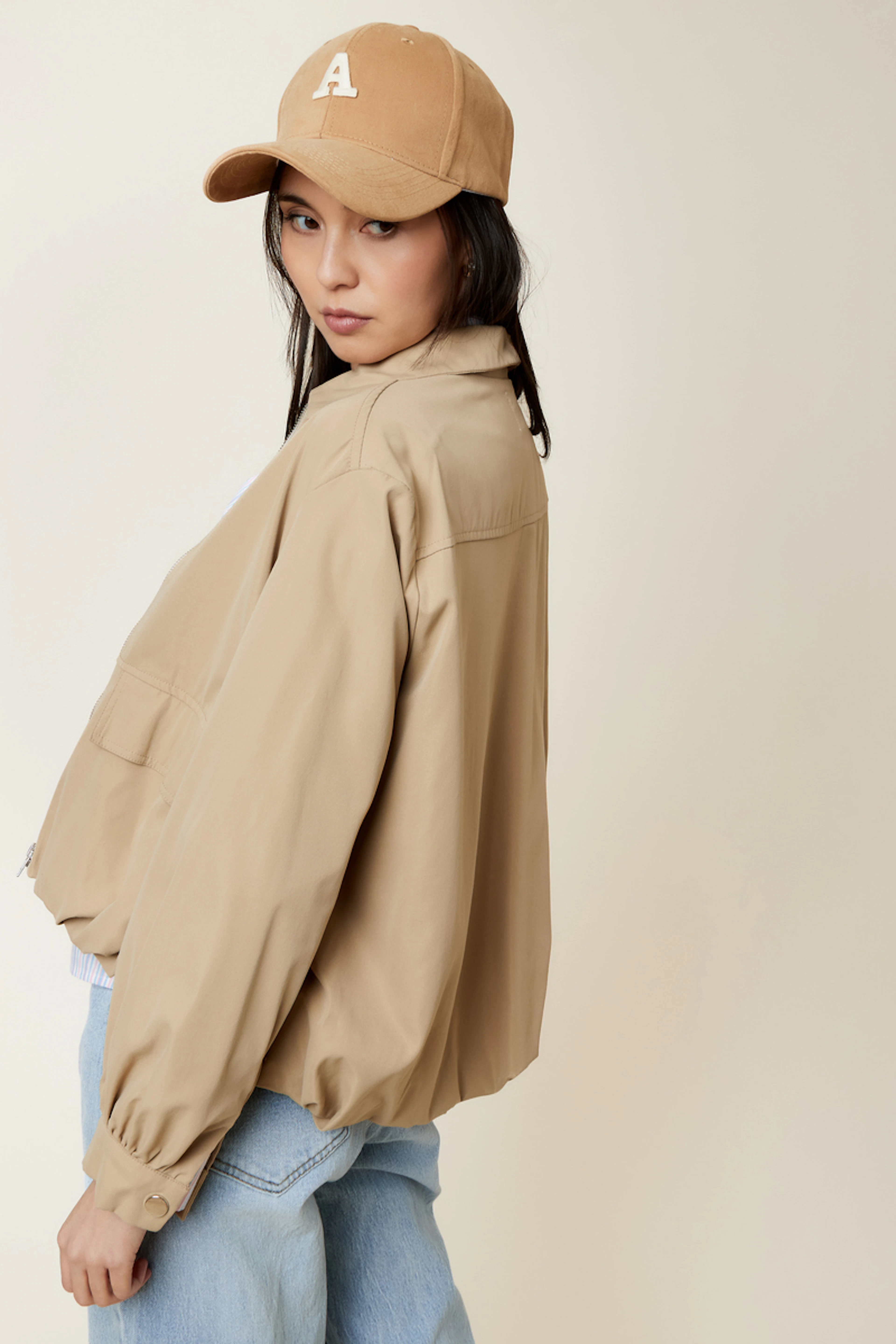 Associez cette veste beige avec un jean slim et des bottines pour un look casual chic. Idéal à porter pour l'hiver avec une écharpe moelleuse. • Veste à manches longues • Coupe ample • Fermeture zippée devant • Poches à rabats • Taille ajustée avec élastique
