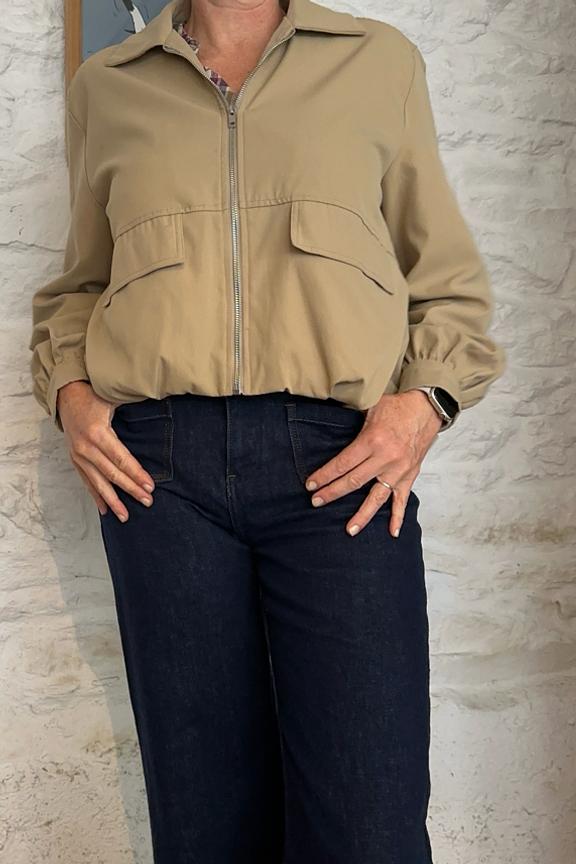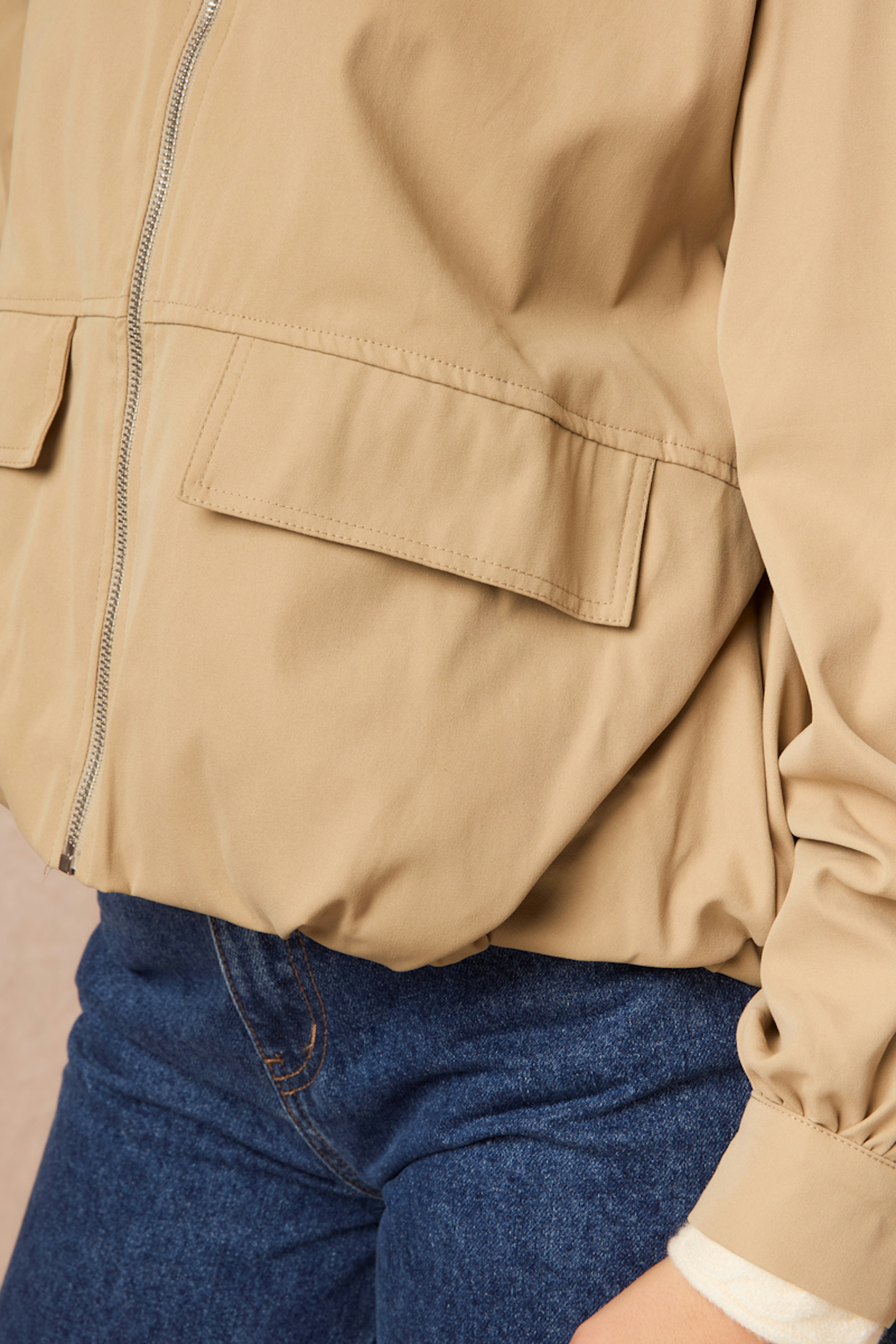 Associez cette veste beige avec un jean slim et des bottines pour un look casual chic. Idéal à porter pour l'hiver avec une écharpe moelleuse. • Veste à manches longues • Coupe ample • Fermeture zippée devant • Poches à rabats • Taille ajustée avec élastique